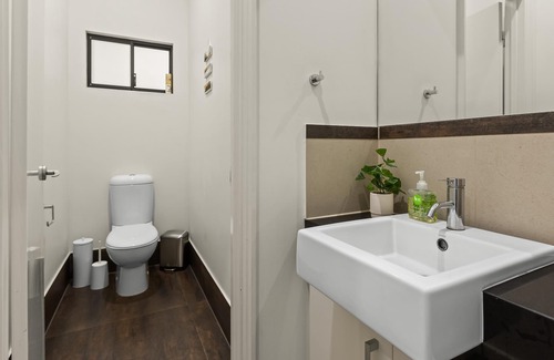 Both ensuite and main bathroom are fitted with high quality tapware, rainfall showerheads, full height tiling and luxe vanity basins. Soak your worries away with your freestanding porcelain tub. YES!