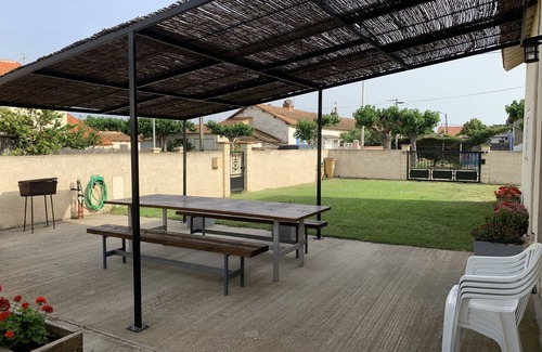 Acondicionado en casa con un hermoso jardín de 200 m² terraza cerrada, porche, muebles de jardín, barbacoa.