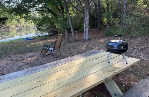 Camper in country setting beside water, near Burning Star Wildlife area | Alquiler De RV en Elkville