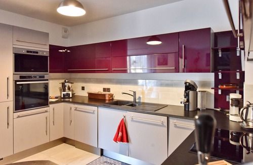 - Una cocina hermosa y grande abierta al salón, con todo lo que necesita, especialmente una máquina de café Nespresso (¿qué más?)pero también todos los electrodom��sticos dignos de una cocina totalmente equipada, como placas de inducción, un Magimix, una máquina de cerveza y utensilios en desorden (así que, ¿feliz?)