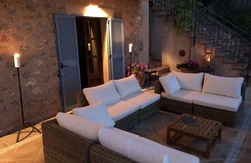Set in a tranquil location in S’Empeltada, just a 15 minute walk from the centre of Deia in the Tramuntana mountains UNESCO heritage area, Can Jolie is a traditional-style 4 bedroom villa, with magnificent sea views, a pool, multiple outdoor dining and lounge areas, and air conditioning in all bedrooms.