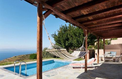 Un delicioso jardín con césped es el lugar ideal para dejar que sus niños pequeños corran salvajes mientras usted y su pareja descansan debajo de la pérgola mientras el sol desaparece en el azul profundo. Una cocina abierta, una espaciosa sala de estar con chimenea, una cómoda habitación doble, una habitación con una cama litera doble con capacidad para tres y un baño puede servir como escenario para unas vacaciones inolvidables en la isla de Kea.