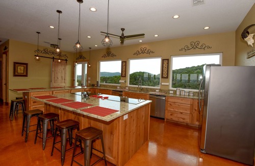 Hermosas noches llenas de estrellas te esperan a ti, a tu familia y amigos. Disfrute de la hermosa salida del sol o de la impresionante salida de la luna y del cálido aire de Hill Country desde su piscina privada. O pase sus días disfrutando de las increíbles vistas y la exótica vida salvaje en el porche cubierto de 2,000 pies cuadrados.
