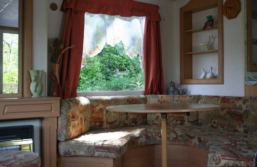 Dentro del salón hay una chimenea de gas incorporada, un televisor de 32 "con su propia caja abierta / antena parabólica y una buena selección de programas de alta definición, un reproductor de DVD separado y Wi-Fi. Hay una atractiva zona de comedor como parte del salón.