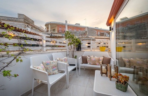 Este apartamento con "arrendamiento turístico" se encuentra a pocos pasos de la Piazza Archimede y la Piazza Duomo, el corazón palpitante de la ciudad vieja. Cas'amuri está en dos niveles: a través de una escalera de entrada, ingresa al primer piso donde hay dos habitaciones grandes y cómodas y un baño. Una segunda escalera conduce al segundo piso donde hay una cocina y una gran terraza con vistas a los tejados de Ortigia. Por lo tanto, es un lugar turístico.