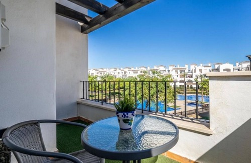 Fabuloso apartamento de 2 dormitorios con orientación sur en La Torre, a 5 minutos a pie del centro principal de la ciudad, donde se encuentran todos los restaurantes y bares. También está a pocos pasos del supermercado Spar del complejo y de la entrada al campo de golf.