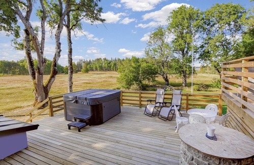 Casa rural muy bonita, a tiro de piedra de la E45, junto al restaurante Tössestugan. Está al lado del Herrgårdshotel, donde se puede disfrutar de sesiones de sauna y bañarse en el jacuzzi por una tarifa. Desde la terraza hay una fantástica vista del paisaje cultivado de Dalsland, y al fondo se ve el hermoso Västanåberget. También encontrarás bayas y setas en los bosques y prados de los alrededores. También hay muchos alces por aquí. La cercana ciudad de Åmål tiene una arquitectura pintoresca y también es conocida por su festival de blues y su hermosa ubicación junto al lago Vänern. Por supuesto, toda la familia puede disfrutar aquí de la pesca y la natación.