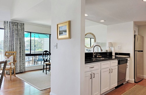 Casa adosada de dos pisos en la playa, vista al lago, fácil paseo a la playa, piscina, estacionamiento cubierto | Condominio en Pawleys Island