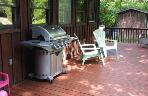 Esta casa está ubicada a solo 3 millas a las afueras de Clayton en un lote boscoso. Hay 4 dormitorios, 2 salas de estar, un comedor / cocina y 2 baños. Usted aprovecha al máximo la sala de estar, la cocina, la lavandería y la parrilla de gas en la cubierta.