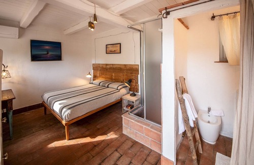 Casa Alice is located in the heart of Monte Gruttas, a small hamlet in the territory of Castiadas which, with its 13 km of coastline and enchanting landscapes surrounded by greenery, represents one of the most picturesque municipalities in the historic region of Sarrabus . In fact, at the end of the 19th century, it became the seat of the Penal Colony, the largest agricultural penal structure in Italy, created with the aim of reclaiming a marshy and unhealthy area, utilising the work of prisoners who had to serve their sentences. The colony ceased its activity in the early 1950s when the Ente di Trasformazione Fondiaria e Agraria della Sardegna (ETFAS) - Land and Agricultural Transformation Authority of Sardinia - acquired the management of the territory by implementing the agrarian reform and assigning the farms derived from the expropriation to farmers in order to revitalise Sardinian agriculture. The original marble plaque hanging proudly on the wall identifies Casa Alice as “Podere n° 17 – San Ugo“. A farmhouse restored and furnished with passion by the owner who preserved its authenticity: light switches in refined porcelain, the original floors, an old wood-burning stove, furnishing purchased in Provence, the original internal staircase, a stable transformed into a prestigious wine cellar, all giving the property a retro soul and making it ideal for those looking for peace and quiet without sacrificing the style.