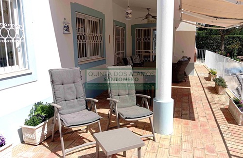 Amora casa en Quinta dos Alamos consta de 3 habitaciones (1 doble y 2 x 2 camas), dos cuartos de baño privados, además de un cuarto de baño con ducha, sala de estar con televisión por cable la cocina está totalmente equipada. El lote está cercado por un muro y de cobertura y el jardín tiene una zona con césped junto a la piscina. La piscina vedada (10 x 5) con amplias terrazas, barbacoa y jardín con césped y flores.