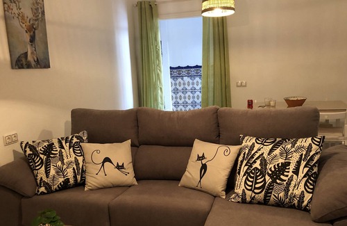 En la primera planta están las habitaciones. La primera con cama de matrimonio tipo 'queen size' (1,50). La segunda habitación tienes dos camas, una doble de 1,35 y una de 90. La tercera habitación tiene una cama doble. También disponemos de una cuna de viaje. En esta planta está el segundo baño. Todas la habitaciones y el salón comedor, tienen emisores térmicos de bajo consumo.