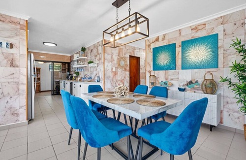 Nestled in the heart of Fajardo, Las Croabas Casa Blue Laguna boasts the best location for your Puerto Rican adventure. Casa Blue Laguna is a private 6,200 SQ FT majestic family estate with breathtaking 360 views of the ocean and Palomino Islands .This unique, picturesque and fun property offers 4 bedrooms and 3.5 bathrooms, comfortably accommodating up to 8 guests. It features a spacious and comfortable outdoor terrace with panoramic views of the ocean and mountains.