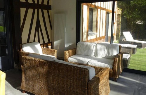 Casa típica de Norman desde el siglo XVIII en el borde del bosque de la UE, bajo la Bahía del Somme. ¿Viajas con familia o amigos? ¡Entonces usted está en el lugar correcto! El impresionante edificio de entramado de madera se renovó en 2019 y ofrece las mejores instalaciones residenciales con espacio habitable de 75 m², una cocina de última generación, 5 dormitorios y 4 baños. El jardín de invierno, la terraza con esquina del salón y el hermoso jardín acostado en el sur. Descanso y relajación, a pocos minutos en automóvil de las vastas playas de la costa normanda. Si lo desea, puede probar Boules o jugar un juego de póquer en la noche (mesa de póquer y mapas disponibles) Rieux es una pequeña aldea cerca del pintoresco pueblo de Blangy-sur-Bresle. Las estaciones Le Tréport y Mers-les-Bain se encuentran a menos de 20 minutos en coche. Los acantilados escarpados elevados se tornan sobre las amplias playas de guijarros, que exponen enormes superficies de arena a baja marea. En el norte se encuentra la bahía del Somme, una de las bahías más hermosas del mundo. En el suroeste llegas a la ciudad portuaria de Dieppe y al complejo de Etretat con sus espectaculares formaciones rocosas, que están inmortalizadas por numerosos artistas.