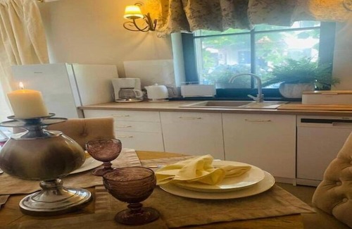 Una casa de vacaciones única con sauna y jacuzzi, en una ubicación única, perfecta para unas vacaciones excepcionalmente exitosas. Lubin es un pequeño pueblo de veraneo situado en la costa (a unos 7 km de la playa del mar Báltico en Międzyzdroje), rodeado por la pintoresca orilla de la laguna de Szczecin y el lago Wicko Wielkie (a 400 m de la casa de la playa más cercana). Cómoda casa de vacaciones de una sola planta con jardín privado. La casa dispone de una terraza con mobiliario de jardín y zona de barbacoa. En el interior hay un salón con chimenea conectado a una cocina bien equipada, 2 dormitorios independientes y un baño con ducha. TV en el salón y en un dormitorio. Calefacción eléctrica + chimenea (leña incluida en el precio). Hay internet inalámbrico disponible. En el jardín privado y vallado hay una sauna privada y una bañera de hidromasaje (de junio a septiembre). Hay estacionamiento seguro. El anfitrión vive en la propiedad vecina y también pone su parte del jardín a disposición de los huéspedes. El anfitrión tiene un pequeño establo al lado de su casa donde imparte clases de hipoterapia. Incluido en el precio de su estancia: ropa de cama, toallas, sauna privada, jacuzzi privado (disponible del 01.06 al 30.09), consumo de electricidad y agua, leña para la chimenea, tarifa del resort, aparcamiento, internet, limpieza final. En las inmediaciones, las mayores atracciones son los escarpados y pintorescos acantilados sobre la laguna de Szczecin, un asentamiento fortificado con terrazas de observación, la pintoresca colina Zielonka y el hermoso lago Turkusowe con Piaskowa Góra elevándose sobre él. Todo a unos cientos de metros. Bueno. A 1 km del puerto donde salen los cruceros. También hay un puerto pesquero donde podrá abastecerse de pescado fresco y ahumado. También hay varios bares y un restaurante en el establecimiento. A unos cientos de metros de la casa hay varias playas pequeñas donde se puede nadar en el lago.