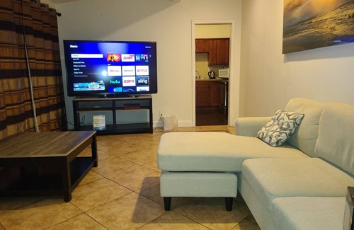 Ubicado a 3 millas de la playa, cerca de tiendas, restaurantes y transporte público. Hermosa, lujosa, espaciosa, bien equipada casa de 2 dormitorios. Este acogedor espacio cuenta con 2 dormitorios, sala de estar, un baño, área de comedor y una cocina. Cuenta con internet de alta velocidad, wifi y 55 Smart TV. Se encuentra ubicado en el corazón de South Bay, cerca de la playa. Esta casa tiene dos plazas de aparcamiento. Es bueno para parejas, aventureros en solitario, viajeros de negocios y familias (con niños).