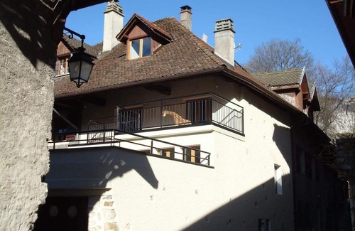 Casa de 3 plantas con patio y amplias terrazas soleadas de 30 y 20m2. 2 dormitorios con cama de 180 y 140 y un escritorio de aterrizaje con una cama de 90 y un colchón de 90, es decir, 6 personas. 2 baños incluyendo una bañera con chorros ... garaje para guardar bicicletas de equipo. Aparcamiento para autobuses, restaurantes, tiendas, caminatas por la playa y el lago a 50 metros. Antigua clase de pueblo medieval con paños y toallas. Cocina amueblada en la ladera de la montaña. Pueblo prohibido a los automóviles excepto para depositar sus víveres, ideal para que los niños corran escaleras abajo y jueguen en los callejones y la calma. A 12 km de Annecy. A 45 minutos de Ginebra. A una hora de Megève. fumar solo en las terrazas. 2 televisores. Cadena hifi. Wifi. inicio de caminata a 20m. en el pueblo