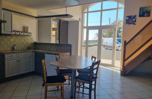 - Planta baja: gran salón (TV + hifi) con chimenea, una cocina equipada (horno, mini-horno, vitrocerámica, microondas, 2 neveras, lavavajillas, cafetera, hervidor de agua ....) abierta al salón, 1 habitación con 1 cama 2 personas, baño, aseo, cuarto de servicio con lavadora y secadora.