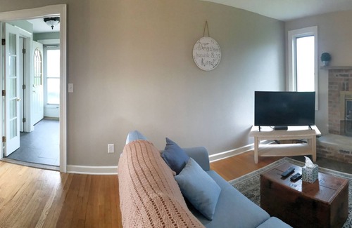 La sala de estar del piso principal también tiene un nuevo sofá desplegable justo fuera de la sala de estar frente al medio baño (toda esta sección tiene puertas privadas desde la sala de estar y el comedor, así como una puerta trasera para salir / entrar a la casa)