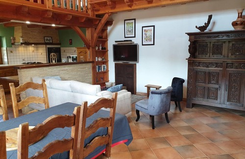 Situado en el campo, antigua casa de campo completamente renovado con jardín y piscina privada. Muy tranquilo con toda la comodidad. Casa que comprende: 2 dormitorios con cama de matrimonio y 1 altillo con 2 camas individuales, 1 baño, aseo, salón con comedor, cocina abierta, lavadero, terraza cubierta + terraza abierta, barbacoa, hermosa piscina (9 x 4, 5). Todo en 2ha jardín.