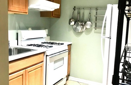 Una unidad de casa de huéspedes privada de dos dormitorios y dos baños en un vecindario tranquilo ofrece un patio privado, cercado y privado. Esta unidad puede acomodar hasta cuatro personas. La propiedad está a 1 milla de BART (sistema de transporte rápido del área de la bahía) y a una cuadra de la estación de autobuses Transbay. La entrada a la autopista, los supermercados, los parques y las múltiples canchas de tenis gratuitas se encuentran a 1 o 2 millas. La estación de ferry de San Francisco Bay está a 6,4 km.