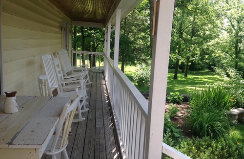 Hermosa casa de huéspedes victoriana en 4 parques como acres con jardines y una capilla familiar de piedra de estilo europeo. La cabaña tiene porches envolventes con mecedoras con vista a un encantador jardín perenne, ¡un lugar perfecto para tomar un café por la mañana o una copa de vino por la noche! La cabaña tiene 2 camas queen, 1 cama king y un futón adecuado para niños. También cuenta con lavadora y secadora, cocina totalmente equipada y una pequeña oficina para trabajar, cocina totalmente equipada, conexión inalámbrica y televisión por cable. Hay una piscina de agua salada de corazón que ocasionalmente se comparte con los propietarios.