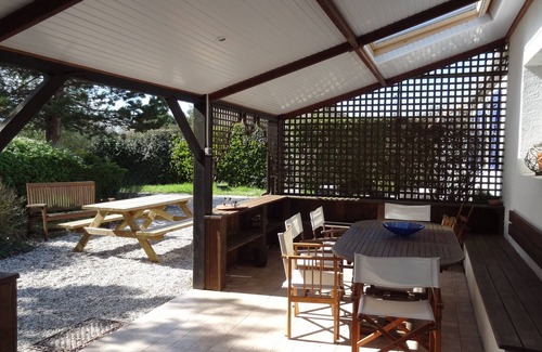 muebles de jardín, barbacoa, petanca, ping-pong.