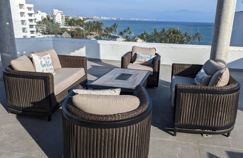 Modern 6th floor penthouse in Bucerias with stunning views of the Bay of Banderas, Sierra Madre Mountains and just steps away from the beach. Conveniently located to restaurants, shops and activities.