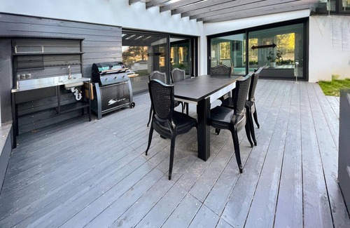 Casa de vacaciones única y moderna con piscina, jacuzzi exterior y vistas al lago, en plena naturaleza.