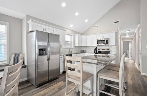 ¡Esta casa de nueva construcción y nunca alquilada está lista para hacer de esta su mejor vacación aún! La hermosa casa 3 BR 2 BA cuenta con una gran sala de estar donde la familia puede reunirse mientras mira la televisión de pantalla grande, juega, disfruta de algunas comidas juntos en casa o simplemente se relaja en los cómodos muebles. Hay hermosos pisos de madera dura en todo el espacio habitable con alfombras en las habitaciones. La cocina cuenta con electrodomésticos nuevos de acero inoxidable y tiene todo lo que necesitará para preparar una comida. También te encantarán las encimeras de granito, las salpicaduras de azulejos y la gran isla donde los amigos y la familia pueden reunirse mientras se prepara la comida. Todas las habitaciones tienen camas / colchones nuevos y tienen televisores de pantalla plana para que los huéspedes disfruten. El dormitorio principal tiene un baño grande con una hermosa ducha con azulejos. Hay nuevas lavadoras y secadoras para uso de los huéspedes. Afuera, el gran patio delantero es el lugar perfecto para pasar el rato y disfrutar de un cóctel o relajarse en la fresca brisa de verano.
