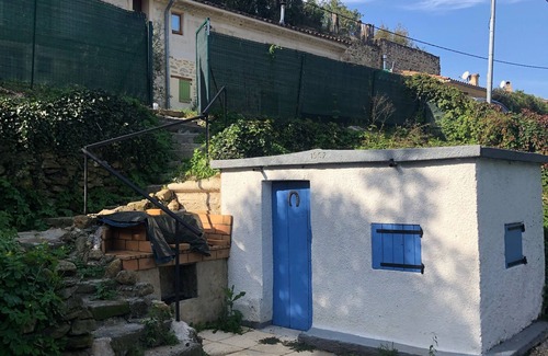 Esta casa de piedra "cebolleta" te espera para unas vacaciones tranquilas, atípicas con su bóveda de cavernas, cerca del pueblo y una vista del campo.