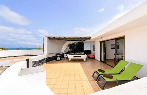 Casa de playa Famara en la orilla con piscina compartida, vistas al mar/montaña y Wi-Fi | Casa en Famara