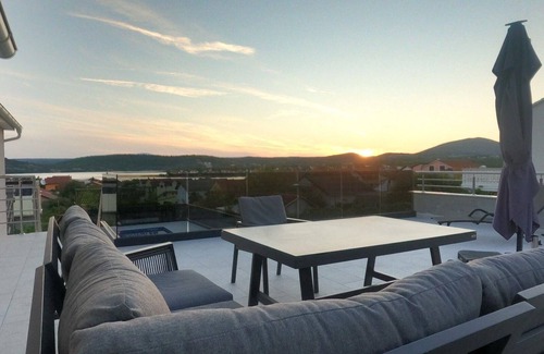La Villa Lotti es una hermosa casa de vacaciones con su propia piscina y una gran terraza en la azotea. La casa consta de 5 apartamentos independientes. Cada uno está totalmente equipado y tiene su propia cocina, baño, lavadora, lavavajillas, aire acondicionado, cama doble y sofá cama. La casa es perfecta para varias familias y grupos de vacaciones. A 150 metros del agua, puede disfrutar de la hermosa vista al mar desde la gran azotea debido a la ubicación de la ladera. La amplia zona al aire libre está equipada con cómodos muebles de salón y ofrece mucho espacio para disfrutar del sol, relajarse o disfrutar de agradables barbacoas. En la piscina podrá refrescarse y relajarse. Para hacer que las vacaciones sean especiales, alquilamos motos de agua, lanchas a motor y un hermoso yate a motor en el pueblo. Para que pueda experimentar Croacia en excursiones desde el agua. Tiene una persona de contacto en el sitio que conoce los consejos de expertos en el área y está a su disposición si tiene alguna solicitud o pregunta. El parque nacional de Krka está a sólo 10 minutos en coche. También se puede llegar fácilmente al centro de la ciudad de Sibenik en 5-10 minutos. Si llega en avión o no quiere conducir nada usted mismo, podemos ofrecerle nuestro servicio de conducción. Espere unas vacaciones inolvidables en Croacia.