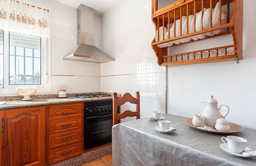 A solo 600 m de la playa dorada de la ciudad costera de El Palmar, la casa de vacaciones Casa Marquez goza de una ubicación tranquila en el complejo Palmar Chalat. Con una superficie total de 100 m², la casa consta de un salón/comedor con cocina bien equipada, 2 dormitorios y un cuarto de baño, con capacidad para 4 personas. Los servicios adicionales incluyen televisor, aire acondicionado en el salón y lavadora. En la zona exterior, puede comenzar el día con una taza de café en el patio cubierto o terminarlo con una cena en la mesa del comedor exterior, disfrutando de las vistas al amplio jardín. El Palmar es ideal para los amantes del surf y los deportes acuáticos. El supermercado más cercano, así como tiendas y restaurantes, se encuentran a 1,5 km (aproximadamente 4 minutos en coche). Además, a solo 11 km (13 minutos en coche), la ciudad de Vejer de la Frontera le espera con sus encantadoras calles y hermosas vistas. Otras ciudades de la provincia, como Conil de la Frontera, también son fácilmente accesibles en coche (a 8 km). Lo más destacado es la proximidad a la hermosa Playa de El Palmar, situada a 650 m o 8 minutos a pie, donde podrá relajarse y disfrutar del sol andaluz.