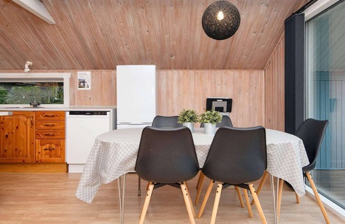Casa de vacaciones ubicada en la hermosa Fuglslev. Aquí están todas las oportunidades para reducir la velocidad y disfrutar de la paz y la tranquilidad dentro del bosque. Sala de estar y cocina en uno, por lo que no importa si tiene que cocinar o jugar, todos pueden participar al mismo tiempo. La casa está decorada con un toque personal. Hay una terraza cubierta donde la familia puede asar la cena y sentarse y divertirse. La casa está ubicada al final de una vía de acceso y, como resultado, no pasa mucha gente. No se alquila a grupos de jóvenes.