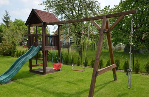 La casa unifamiliar de Milán con piscina y sauna en el jardín se encuentra en las afueras de la ciudad de Vrchlabí. En la planta baja de la espaciosa casa hay un baño con sauna, una sala de estar (a través de esta, se puede acceder directamente a la terraza), una cocina y un dormitorio. En el 1er piso hay otro dormitorio. La casa tiene un jardín grande, vallado y bien cuidado, con una piscina en el jardín. Cuando hace buen tiempo puede sentarse en la terraza, también hay una barbacoa y un trampolín y un columpio para los niños. También puede utilizar un garaje, el segundo coche se puede aparcar al lado de la casa. Lugares de interés en la zona: en verano, puede practicar senderismo en las cercanas montañas de los Gigantes o visitar el parque de animales en Dvůr Králové, también hay una bonita piscina al aire libre en Vrchlabí. En invierno hay una gran cantidad de zonas de esquí en la zona para esquiadores avanzados (Herlíkovice, Špindlerův Mlýn, Černá hora), pero también para principiantes (Bubákov o Knežický vrch). La casa de Milán es ideal especialmente para familias con niños.