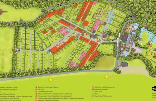 "Duinlodge", chalet de madera 4 habitaciones 43 m2. Con mobiliario confortable: con WC separado. Salón-comedor abierto con TV. Salida a la terraza. 1 dorm. doble con 1 x 2 literas (80 cm, 200 cm de longitud). 2 dorm. dobles, cada habitación con 2 camas (80 cm, 200 cm de longitud). Cocina abierta (4 fogones, lavavajillas, hervidor de agua eléctrico, cafetera eléctrica, microondas/grill). Ducha. Calefacción. Muebles de terraza. El alojamiento dispone de: Internet (Wifi, gratis). Plaza de aparcamiento (1 coche) junto a la casa. A tener en cuenta: casa para no fumadores. Detector de humo.