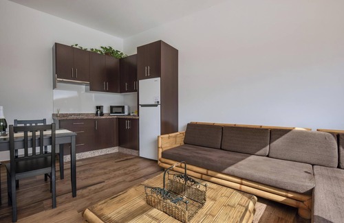 Situada en Adeje, la casa de vacaciones rural "Finca Aramai" goza de fantásticas vistas al mar. La espaciosa casa con un ambiente rústico consta de una sala de estar, una cocina bien equipada, 2 dormitorios y un baño, por lo que puede alojar a 4 personas. Los servicios adicionales incluyen Wi-Fi y una smart TV. Hay una cuna disponible bajo petición. Lo más destacado de la propiedad es su zona exterior privada con terrazas (cubiertas y descubiertas), una piscina climatizada privada, una bañera de hidromasaje, una ducha exterior y una barbacoa. La zona exterior no deja nada que desear y es el lugar ideal para desconectar del mundo mientras admira las fantásticas vistas. En las inmediaciones hay servicio de lavandería y se puede llegar en coche a restaurantes, cafeterías y bares en 5-10 minutos. El supermercado más cercano está a 7 minutos en coche (2,8 km). Tras 15 minutos en coche llegará a la hermosa costa suroeste de la isla, donde encontrará múltiples playas. Además, el aeropuerto de Tenerife Sur está a 28 minutos en coche de la casa (30 km).