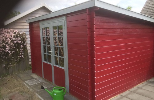 Estacionamiento para 2 autos, en la cabaña del jardín encontrará 4 bicicletas, una parrilla de carbón y los muebles de jardín.