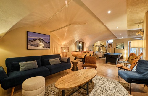 Gran salón de televisión abovedado, mesa de billar y futbolín, estufa de leña, salón infantil con consola de juegos, sauna. Todas las zonas son privadas para nuestros huéspedes. Terraza con magníficas vistas, plancha, mobiliario de jardín. Situado en un gran chalet de montaña de 1618, que ocupa la planta baja y la segunda planta de la casa. Alojamiento turístico de 4 estrellas.