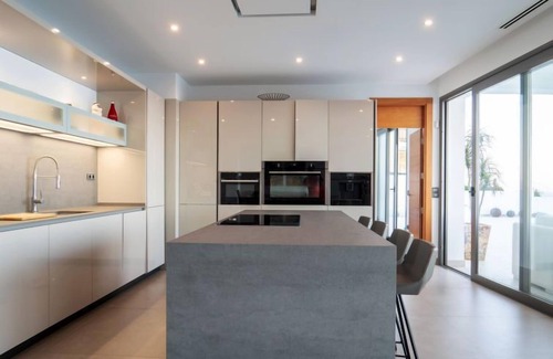 "Luz", villa 8 estancias 651 m2 en 3 plantas. Vivienda adecuada para 10 adultos. Espacioso y luminoso, con mobiliario funcional y de buen gusto: sala de estar con TV digital y pantalla plana. Salida a la terraza, a la piscina. Salón-comedor con aire acondicionado y bomba de calor, caliente. Salida a la terraza, a la piscina. Cocina abierta (horno, lavavajillas, 3 Placas de inducción, tostadora, hervidor de agua eléctrico, microondas, cafetera eléctrica, Cápsulas de café (Dolce Gusto) extra, isla de cocina). Salida a la terraza, a la piscina. En planta inferior: sala de estar con TV digital, pantalla plana y home cinema. 1 dorm. con 1 cama doble (180 cm, 200 cm de longitud), ducha/WC (privado) TV digital. Planta superior: 1 dorm. con 1 cama de matrimonio (200 cm, 200 cm de longitud), ducha/WC (privado) aire acondicionado y bomba de calor, caliente. 1 dorm. con 1 cama de matrimonio (200 cm, 200 cm de longitud), ducha/WC (privado) aire acondicionado y bomba de calor, caliente. 1 dorm. con 1 cama de matrimonio (180 cm, 200 cm de longitud), ducha/WC (privado) aire acondicionado y bomba de calor, caliente. 1 dorm. con 1 cama de matrimonio (180 cm, 200 cm de longitud), ducha/WC (privado) aire acondicionado y bomba de calor, caliente. Salón-comedor con mesa de comedor y rincón cocina. Sala de estar con TV digital. 3 terrazas. Muebles de terraza, tumbonas (6). Vista panorámica al mar. El alojamiento dispone de: lavadora, secadora, plancha, trona, cuna hasta 2 años, secador de pelo. Internet (Wifi, gratis). A tener en cuenta: casa para no fumadores. Permitido máximo 1 mascota / perro. Detector de humo, extintores. VUT/MA/44772