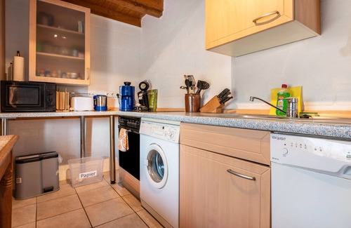 Amplio apartamento de vacaciones con capacidad para 8 personas. En la primera planta hay un gran comedor con rincón de televisión y la cocina abierta totalmente equipada. El dormitorio está amueblado con 2 camas individuales. El gran cuarto de baño tiene ducha y bañera con WC. El segundo dormitorio con cama de matrimonio y sofá cama está en la planta superior. Hay otra posibilidad de pernoctar en una habitación comunicada con 2 camas individuales. Otra habitación con 2 camas individuales está equipada con un WC contiguo. Junto al apartamento, la terraza con un pequeño jardín ofrece mucho espacio para relajarse. Muebles de terraza y barbacoa están disponibles. Hay una plaza de aparcamiento para su coche directamente en frente del apartamento. El equipamiento también incluye una estufa de leña y una máquina Senseo.