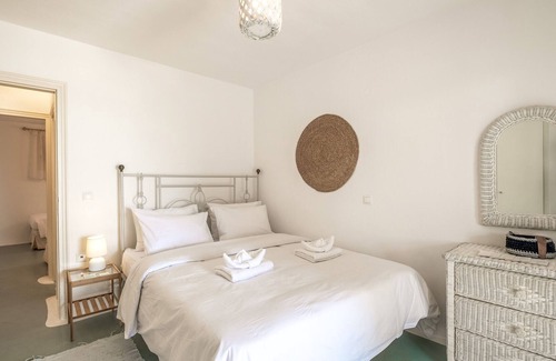 En Mykonos, la casa de vacaciones "Sunny Getaway in Lia Mykonos" cuenta con una excelente ubicación cerca de la playa. Esta propiedad de 2 plantas consta de una sala de estar, una cocina bien equipada, 2 dormitorios y 1 baño, así como un baño adicional, por lo que puede alojar a 4 personas. Los servicios adicionales incluyen Wi-Fi de alta velocidad (apto para hacer videollamadas), televisión, aire acondicionado, ventilador y lavadora.