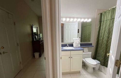 Casa ejecutiva en comunidad cerrada de golf cerca de Disney Se encuentra en Ridgewood Lakes. Casa ejecutiva en comunidad cerrada de golf cerca de Disney ofrece alojamiento, con TV, Silla de ruedas accesible, Niño amigable, Entre otras comodidades. Estas características Casa TV, Silla de ruedas accesible, Niño amigable, Para que su estadía sea cómoda.