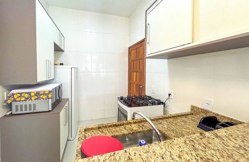 - La cocina está equipada con todos los utensilios necesarios para preparar tus comidas, incluyendo cafetera, estufa, horno, refrigerador, licuadora, microondas, mesada y mesa