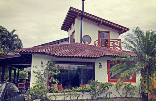 Sean bienvenidos a nuestro hogar. Casa en 2 pisos, con dos suites con AC, una con balcón con vistas al morro, un 3º dormitorio para niños, y un 3º baño completo. Además de la sala de estar con la cocina americana bien espaciosa, comedor, área de servicio, galería con barbacoa, aparcamiento, y un hermoso jardín justo delante del cerro. Condominio tranquilo con cámaras de seguridad y portón electrónico. Ubicación muy buena, cerca de super mercado, farmacia, restaurantes, a 150 mt de la playa!