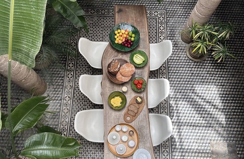La casa está llena de una mezcla de muebles de época y moderno europeo y el arte con algunas antigüedades marroquíes.