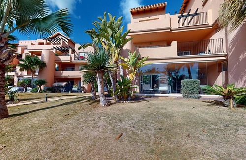 Precioso apartamento en planta baja de 3 dormitorios con orientación sur y totalmente equipado con: jardín, muebles de jardín, terraza, lavadora, plancha, internet (wifi), zona infantil, pista de tenis, pista de pádel, calefacción central, aire acondicionado en todo el casa, piscina comunitaria, parking cubierto, 1 Televisor, tv satelite (Idiomas: Español, Inglés, Francés).