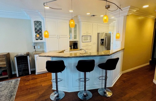 Ven a alojarte en este fabuloso oasis elegante. Ya sea que viaje por negocios o placer, esta casa de 2700 pies cuadrados con tres dormitorios y tres baños puede alojar cómodamente hasta 8 huéspedes sin sentirse abarrotada. Disfrute de una barbacoa en la terraza de la azotea o descanse en la bañera de hidromasaje mientras disfruta de una hermosa puesta de sol. Al otro lado de la calle del océano, esta casa está a pocos pasos de magníficas tiendas y restaurantes. Ubicado en el centro entre Los Ángeles y el Condado de Orange, es muy fácil viajar a las atracciones cercanas. Esta casa tiene todo lo que necesita, lo que la convierte en su hogar perfecto lejos del hogar.