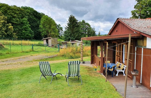 El estilo de la cabaña bungalow independiente de 40 metros cuadrados está idílicamente situado detrás de la casa del propietario en un prado familia y prevé un máximo de 4 personas. En el exterior hay una terraza cubierta con barbacoa. En los niños de césped expansivo se encuentra un montón de espacio para jugar. Hay un aparcamiento disponible en el establecimiento y una cerradura de almacenamiento para bicicletas y equipamiento deportivo traído.